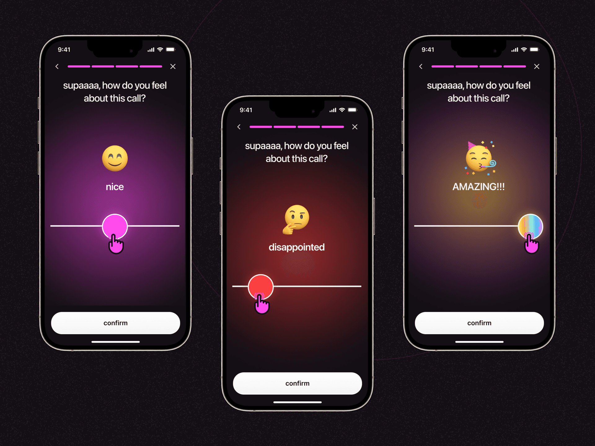 In all, we've made 3 versions of the application, from endless streams of videos to a big button for taking action. Our understanding was refined, and in the end we understood what users wanted: